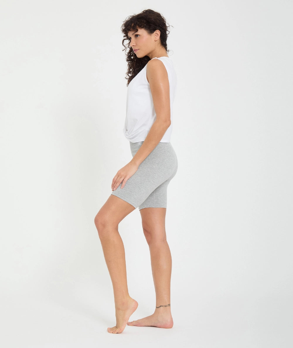 Short confortable en maille de bambou, taille haute et longueur mi-cuisse. Technologie sans couture pour une liberté de mouvement optimale. Parfait pour le yoga, le pilates et le sport au quotidien.